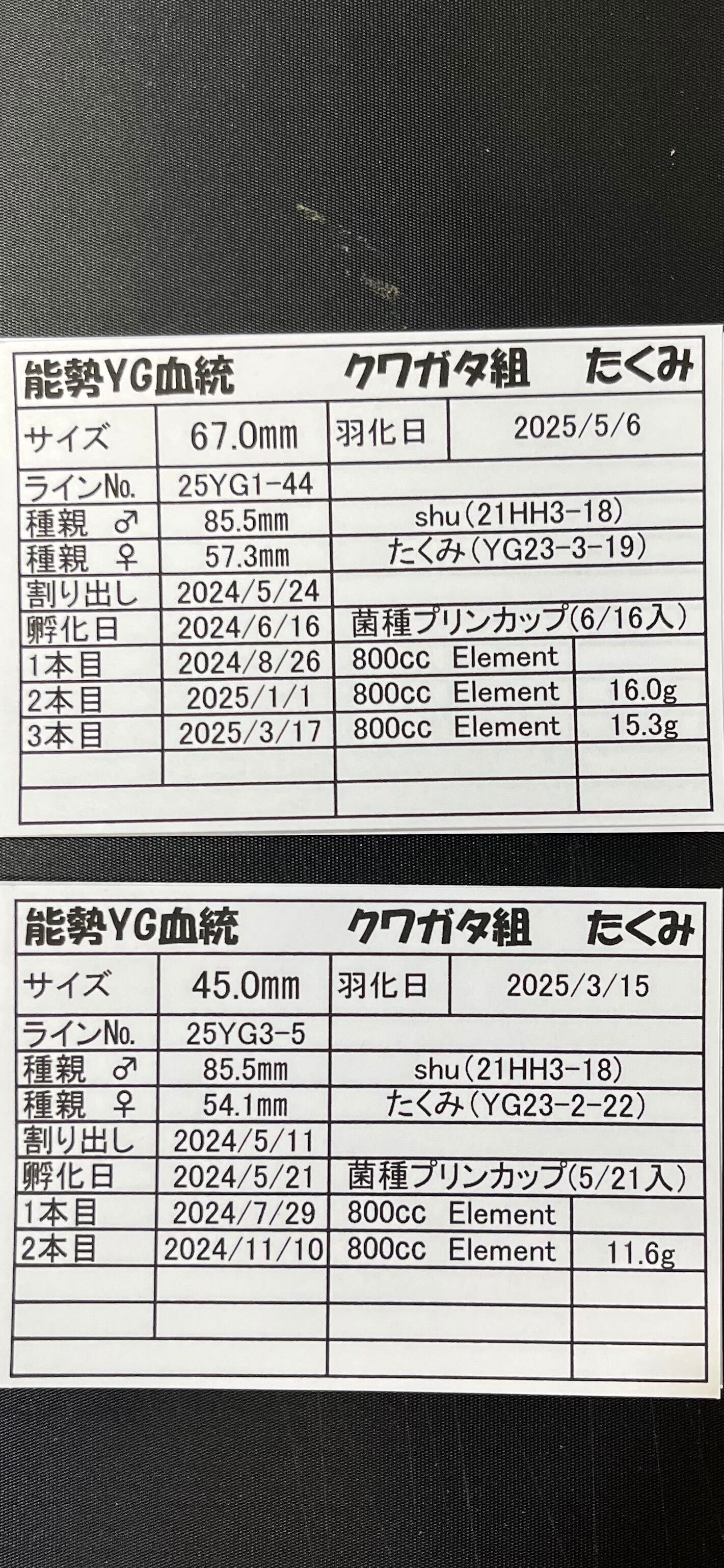 能勢YG血統 オスメスペア㉓ オス67.0mm メス45.0mm