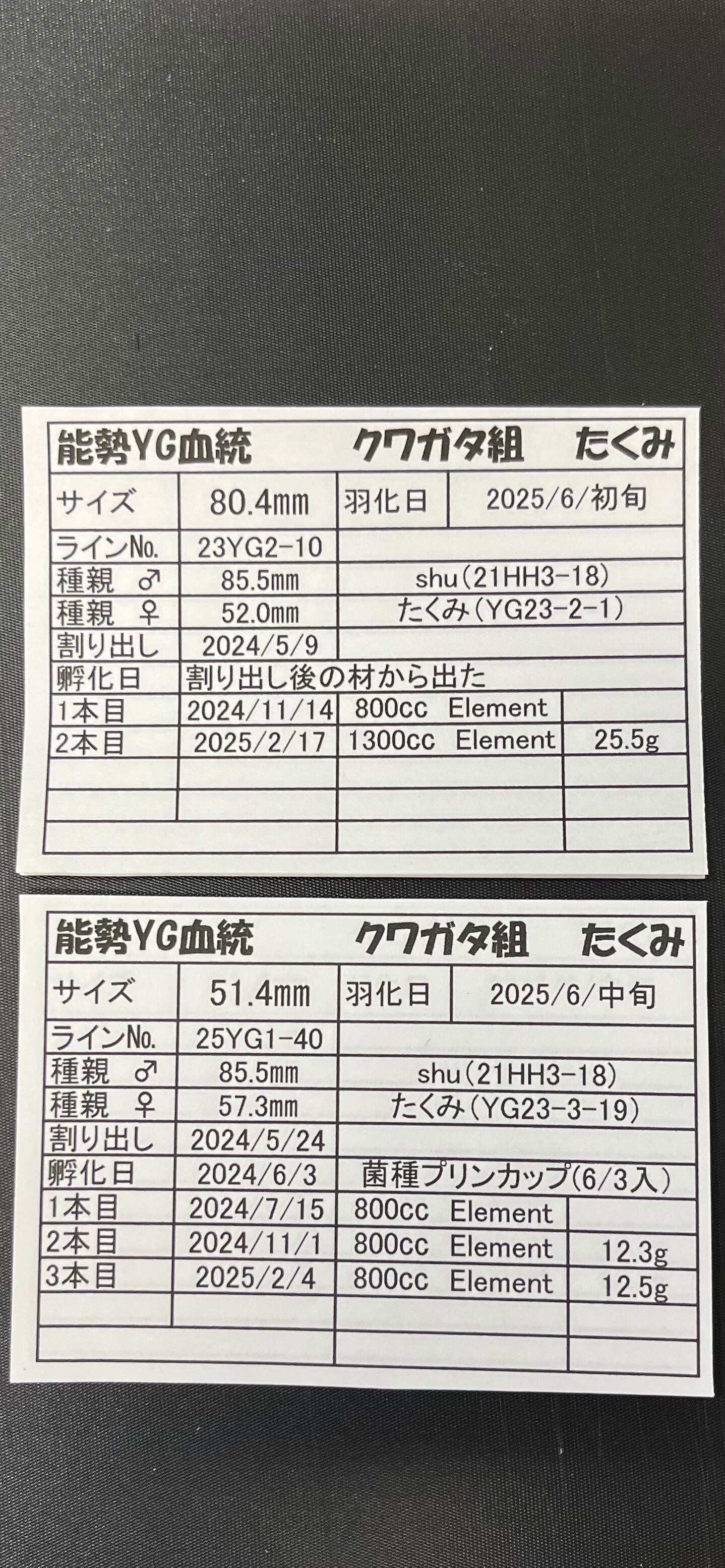 能勢YG血統 オスメスペア⑨ オス80.4mm メス51.4mm