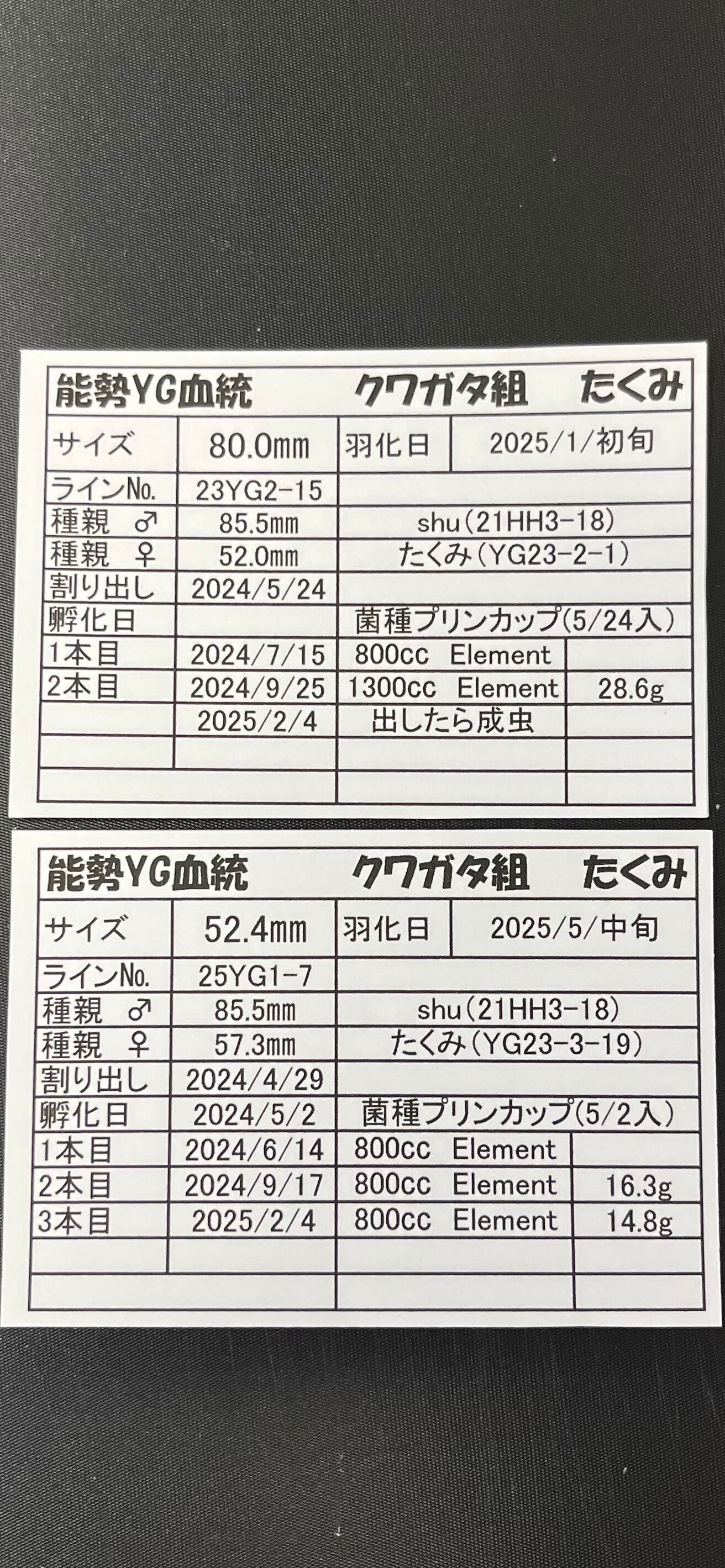 能勢YG血統 オスメスペア⑧ オス80.0mm メス52.4mm