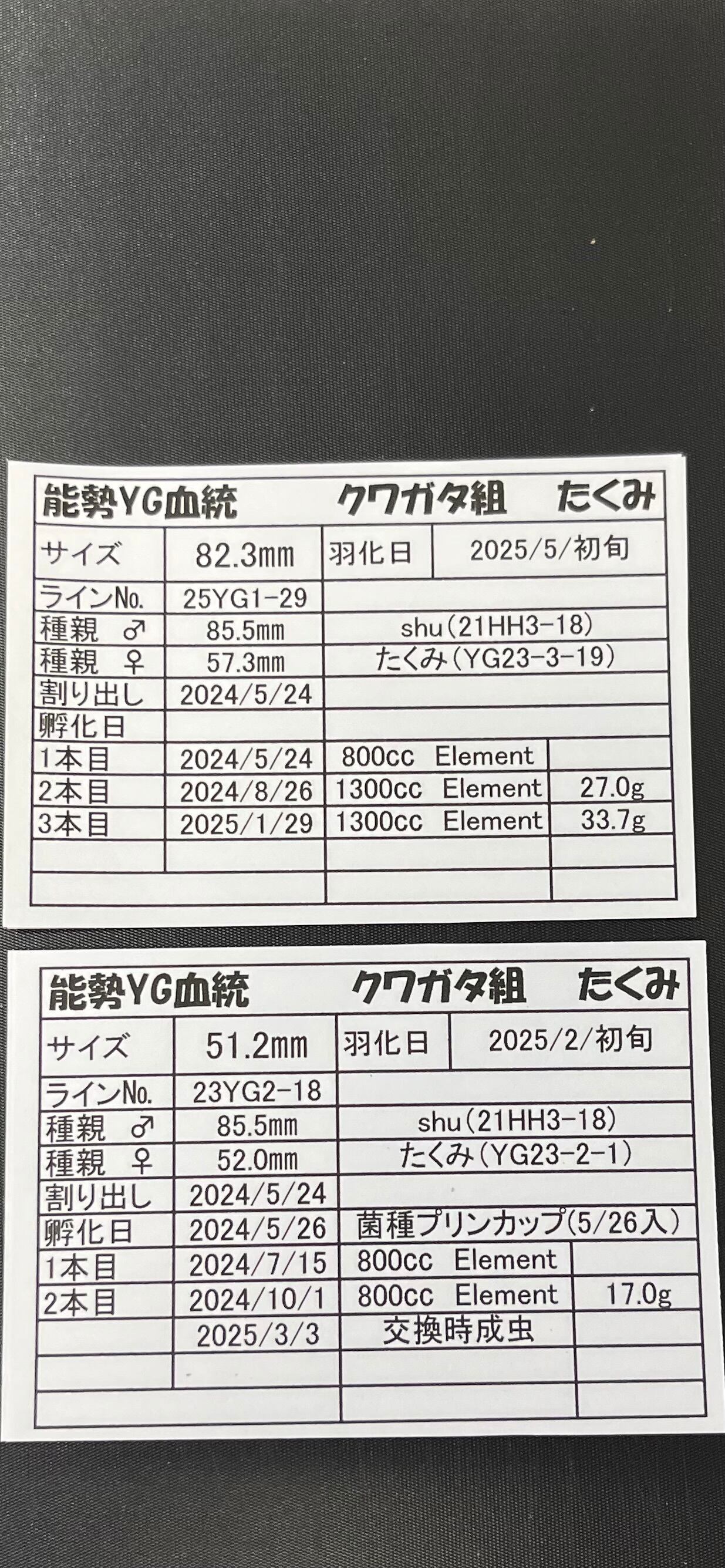 能勢YG血統 オスメスペア⑥ オス82.3mm メス51.2mm