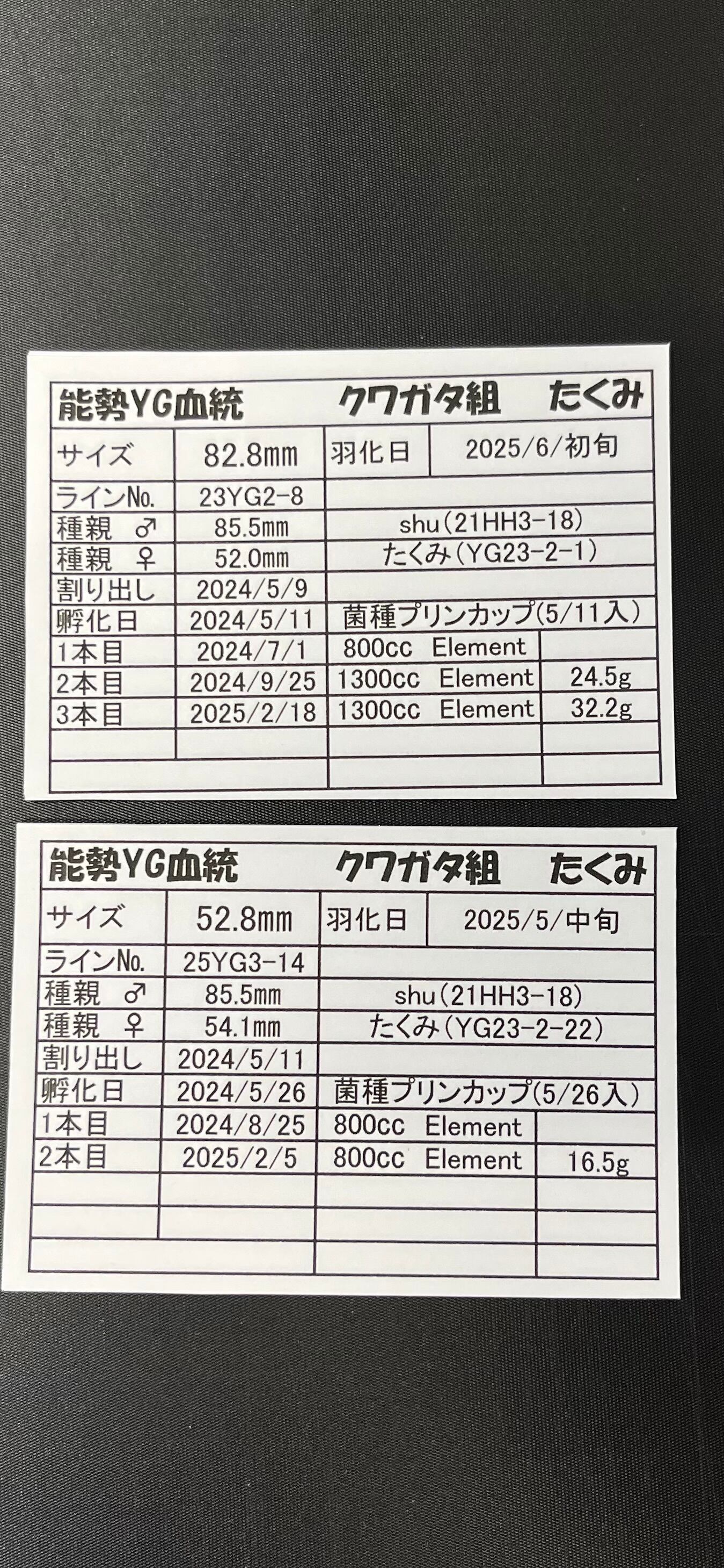 能勢YG血統 オスメスペア③ オス82.8mm メス52.8mm
